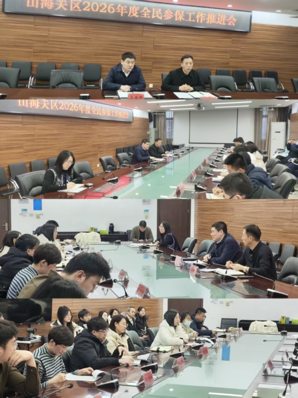 1月13日下午,山海关区召开2026年度全民参保工作推进会,区政府副区长李尚泽参会并对近期工作提出明确要求,医保局主要领导和分管领导,税务局、教体局以及三镇四街主管领导和工作人员参加了会议。李尚泽区长要求:现阶段仍然要持续做好参保宣传动员,进一步完善“一人一档”数据库,健全参保工作台帐,突出抓好2025已参保2026未参保群体,强化精准动员,为推进全市参保进度持续发力。