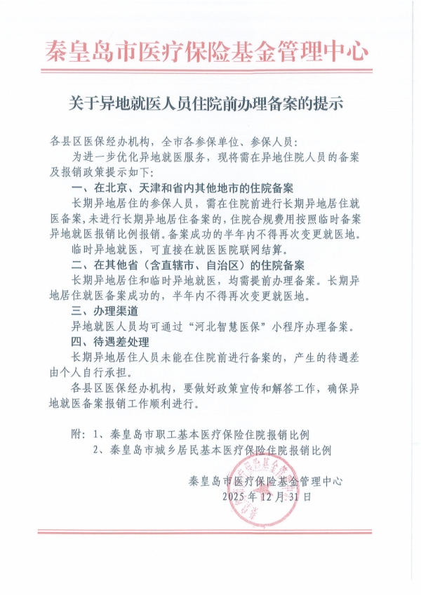 关于异地就医人员住院前办理备案的提示